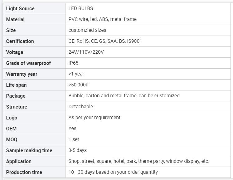 1. Tutti i prodotti sono decorati con lampadine a basso consumo e multicolori.